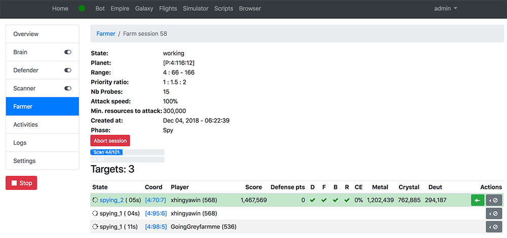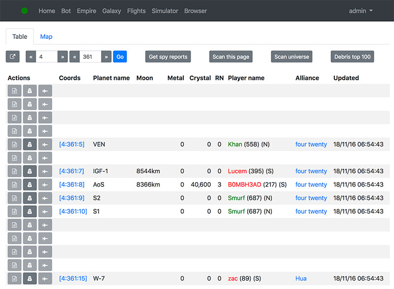 Automatically spy & attack inactive players. Also compatible with universes where the spy probe has cargo capacity!