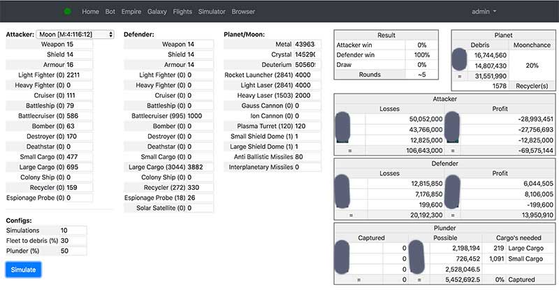Quickly simulate a combat using your planet settings and an espionage report with our in-built simulator.